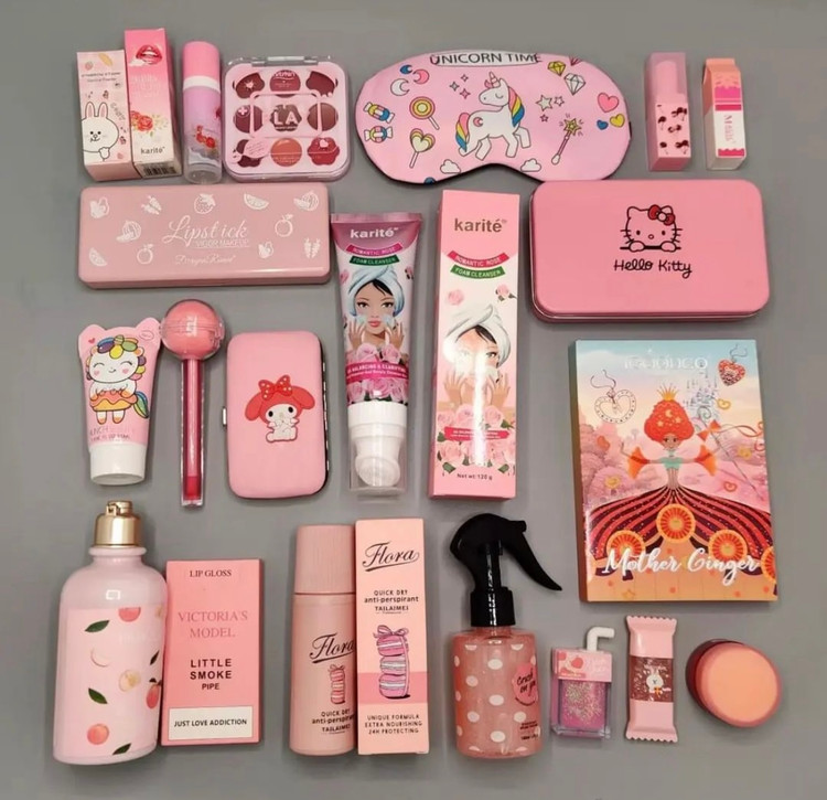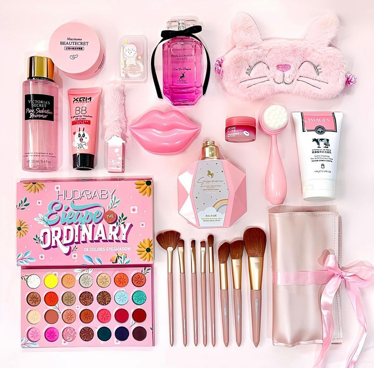 محصولات پک شاملپالت آرایشی،لوسیون بدن،بادی اسپلش،ژل ابرو،بی بی کرم،ادکلن،کرم دست،ریمل،برق لب،تینت لب،بالم لب،آینه ،براش،ماسک ورقه ای،باکس و پوشال