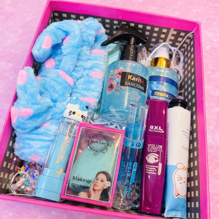 محصولات پک شامل: پالت آرایشی،بادی اسپلش،عطرمو،پک رژلب،بیوتی بلندر،ست براش،ریمل،کرم دست،بالم لب،ژل ابرو،هدبند،باکس و پوشال