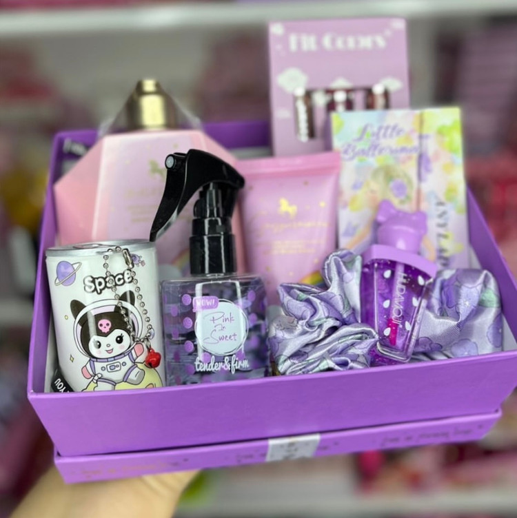 محصولات پک شامل: پالت آرایشی،لوسیون بدن،پک رژلب،کرم دست،دستمال مرطوب،عطرمو،برق لب،کش مو،باکس و پوشال