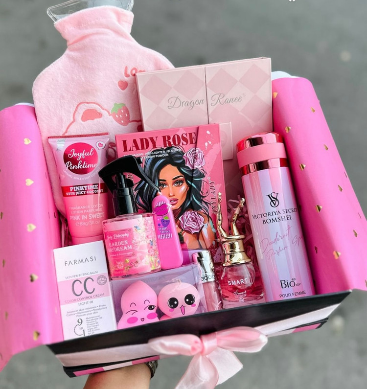 محصولات پک شاملپالت آرایشی،پک رژلب،لوسیون بدن،بی بی کرم،اسپری بدن،عطرمو،ادکلن،لیپ گلاس،بیوتی بلندر،،بالم لب،کیسه آبگرم،باکس و پوشال
